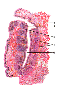 Fig. 242. Лимфоидные узелки в стенке аппендикса.