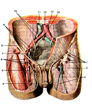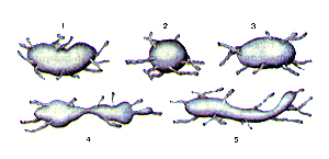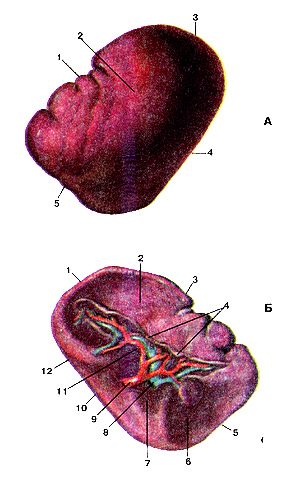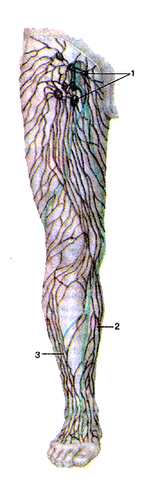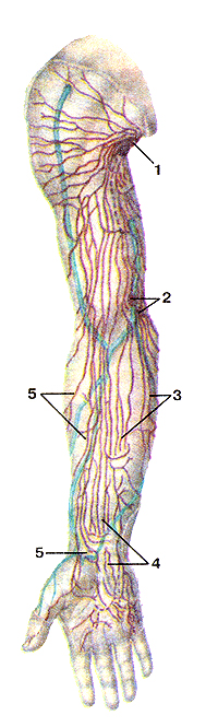 Рис. 248. Лимфатические узлы различной формы. 1-бобовидная; 2-округлая; 3-овоидная; 4-сегментарная; 5-ленто-вндная.