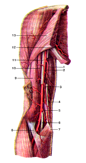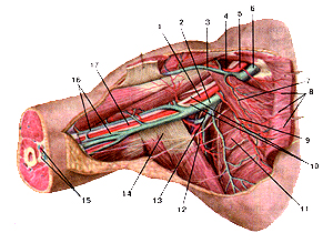 Рис. 291. Подмышечная артерия и ее ветви. Большая грудная Рис. 293. Поверхностные артерии предплечья и кисти, правой.