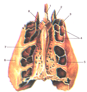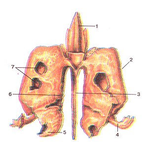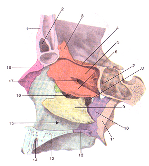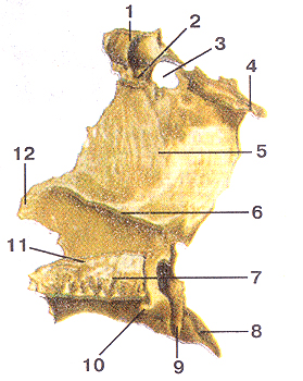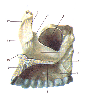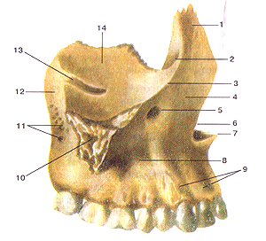 Рис. 32. Верхняя челюсть (верхнечелюстная кость—maxilla), правая. Вид с внутренней стороны.