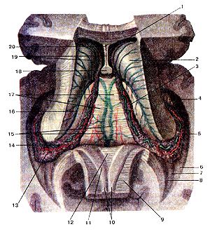 Рис. 346. Боковые желудочки (ventriculi laterales) и сосудистая Рис. 347. Свод (fornix) и гиппокамп (hippocampus).